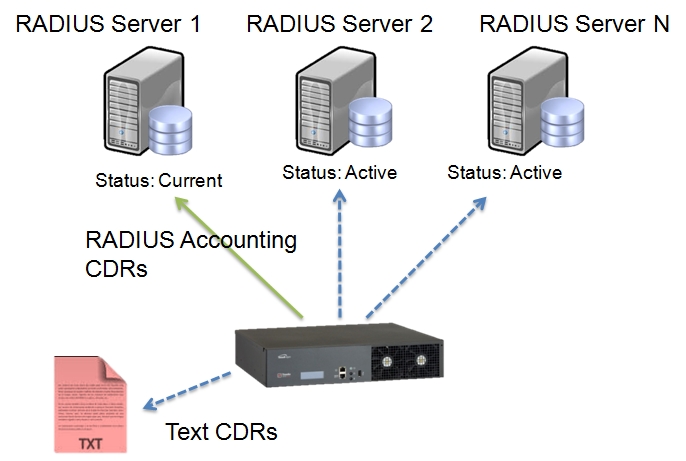 CDR records will be sent out to RADIUS server(s) from the gateway application on the active host