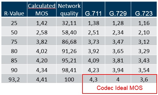 For the MOS calculated from the R-value, there is no notion of codec. We decided to apply a ratio in relation to the codec's ideal MOS.