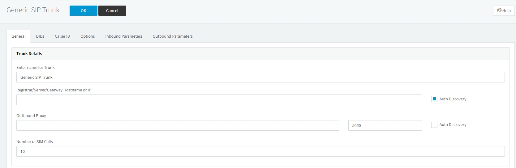 3 - Enter ProSBC IP Address in the Registrar/Server/Gateway Hostname or IP section. Set number of simultaneous calls allowed from this trunk in Number of SIM Calls