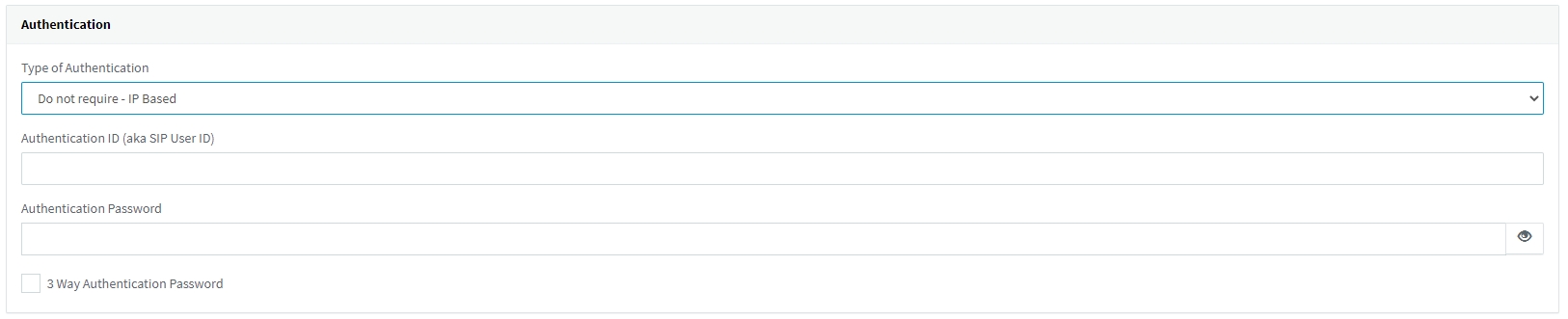 4 - In the Authentication Section select Do not require - IP Based