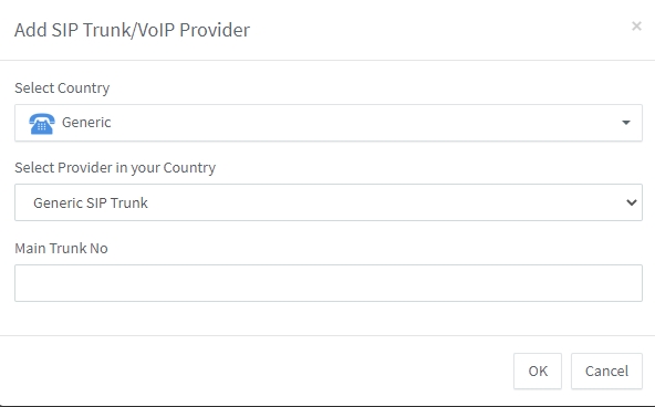 2 - From new menu select Generic for Select Country and Generic SIP Trunk for Select Provider in your Country