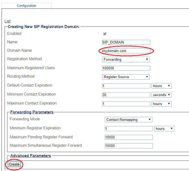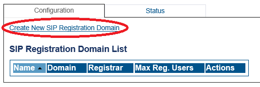 Create New SIP Registration Domain