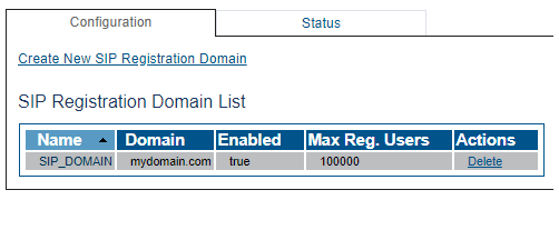 A SIP domain represents a grouping of devices (or users) that can communicate with one another. You must configure SIP Registration Domain for your system. The first step in doing so is to create a SIP Domain: