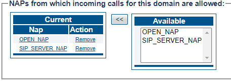 Click "<<" to associate the SIP Domain with the NAP