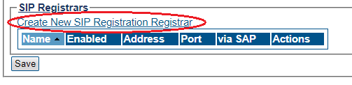 2- Click Create New SIP Registration Registrar