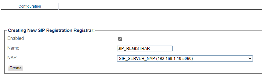 3- Create the new SIP Registration Registrar
