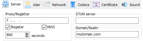 Server Host -IP address/ FQDN configured in the SIP Domain. In our example it is mydomain.com