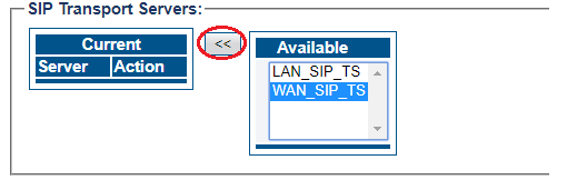 Click "<<" to associate the LAN_SIP_TS with the NAP