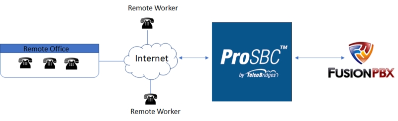 Remote Workers Configuration Instruction with FusionPBX Example Configuration provides you with a step by step Remote workers Configuration of ProSBC with FusionPBX systems, using the Web Portal configuration tool. Complete general installation configuration steps, before you begin configuring your specific scenario. In this guide FQDN (sip.telcobridges.com) configured in the FusionPBX server and registration forwarding used in ProSBC.