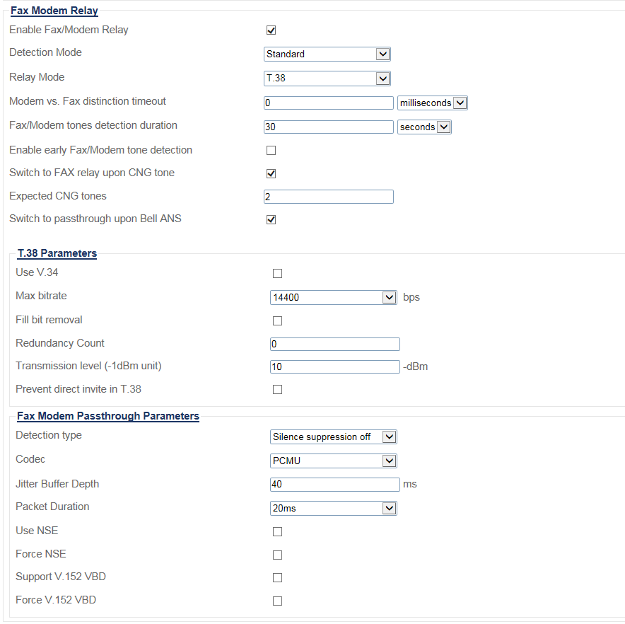 1- Click Fax Relay in the Editing Profile window, to display the customizable options.