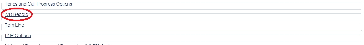 1- Click IVR Record in the Editing Profile window, to display the customizable options.