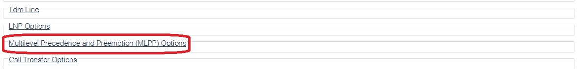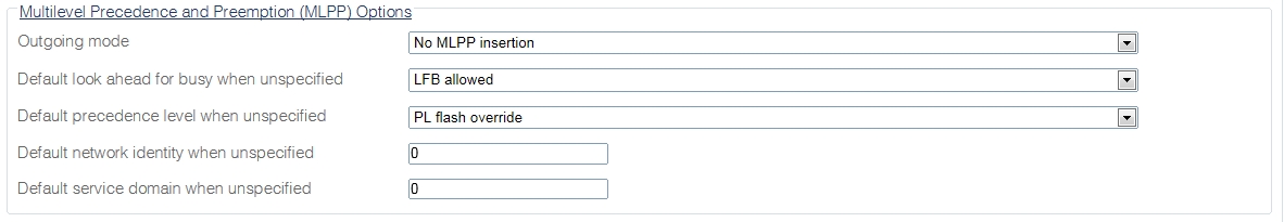 1- Click Multilevel Precedence and Preemption (MLPP) Options in the Editing Profile window, to display the customizable options.