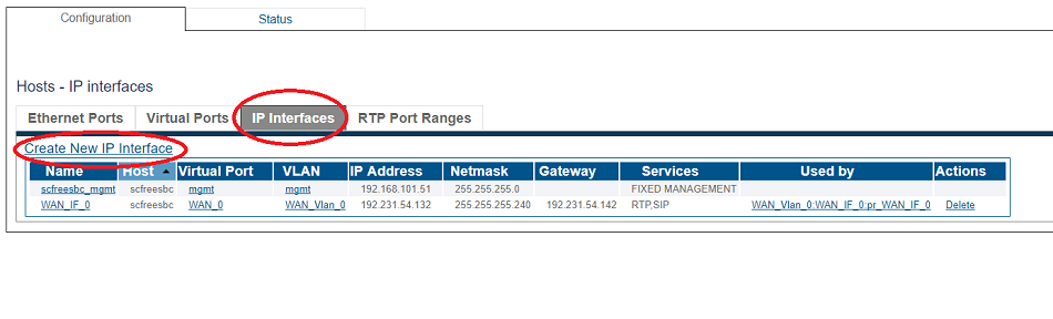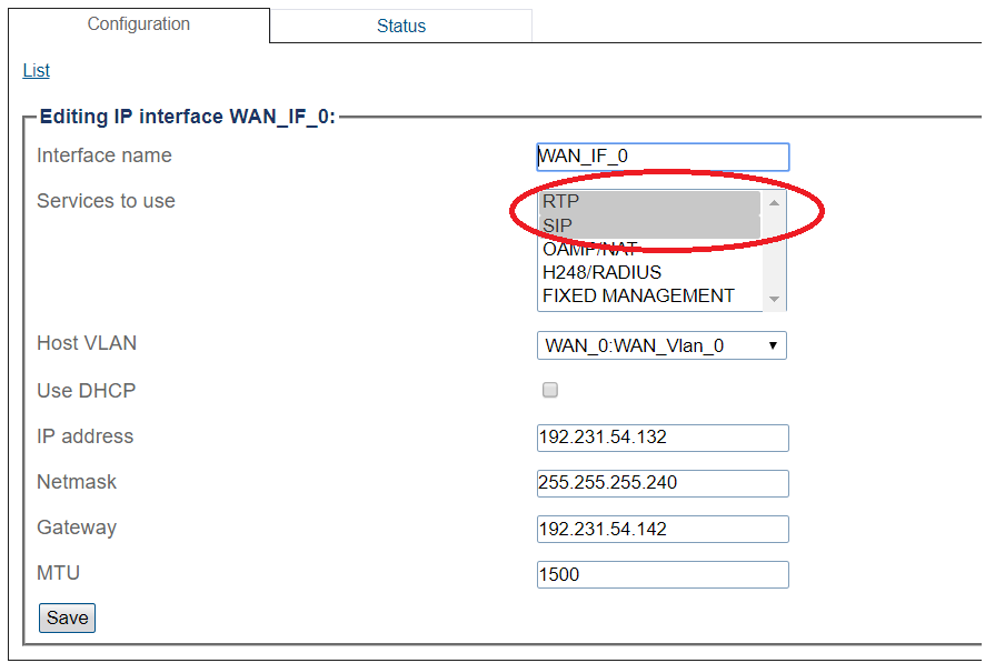 Select 1 or more services to use for the IP interface (RTP and SIP).