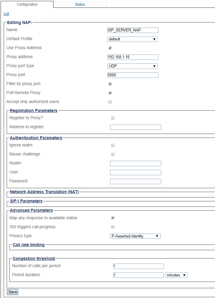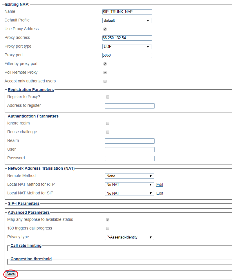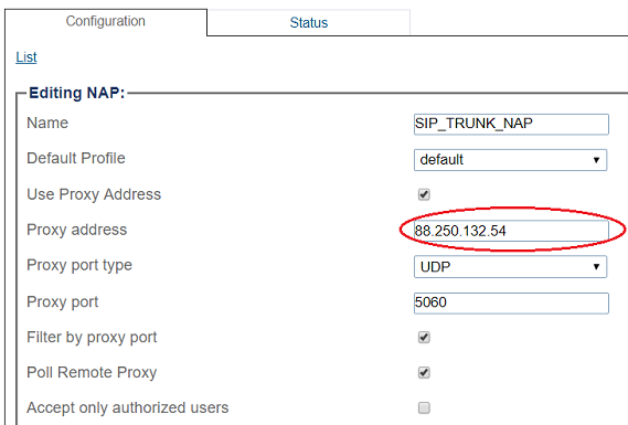 A Network Access Point or NAP represents the entry point to another network or destination peer (e.g. SIP proxy,SIP trunk, etc)