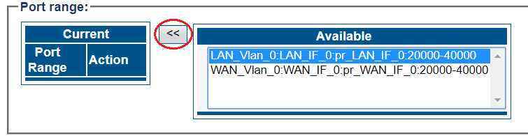 Click "<<" to associate WAN_Vlan:0 Port range with the NAP