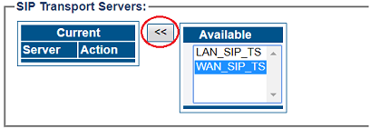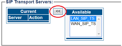 Click "<<" to associate the LAN_SIP_TS with the NAP