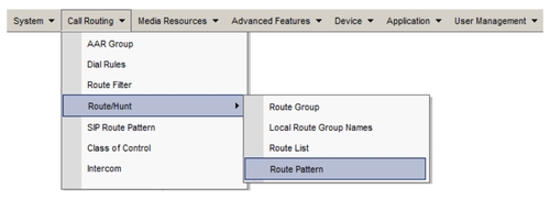8. Define ProSBC’s SIP trunk required Route Pattern through the Call Routing menu.