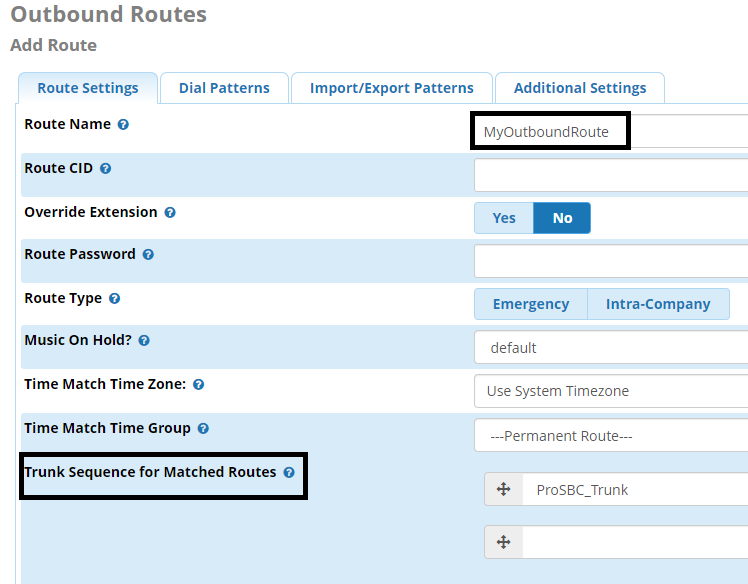 6. Once done, “Submit” the configuration and press the “Apply Config” button. The route is ready to be used and your FreePBX is now configured to with ProSBC.