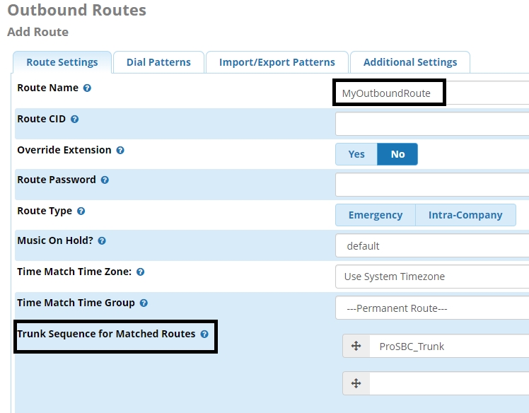 Trunk Sequence for Matched Routes: Use the drop down button to select the SIP Trunk you just created.