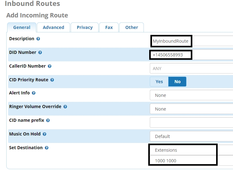 DID Number: fill in the DID number that you will have from your ITSP