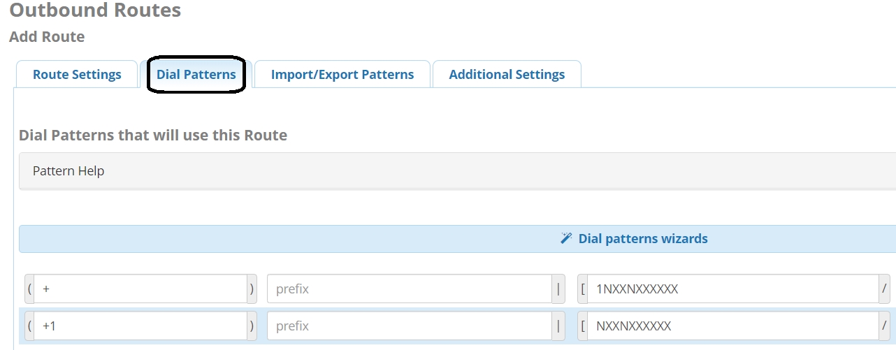 5. Once done, select the “Dial Patterns” tab. You can manually define the dial patterns or use Dial Pattern wizard.