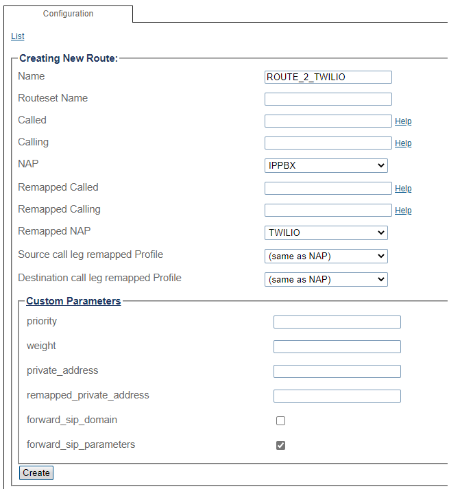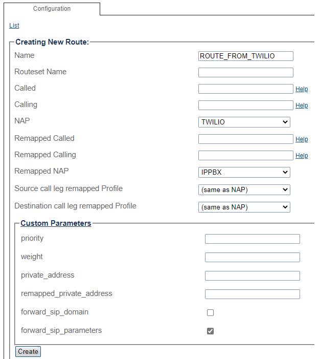 Route Configuration for Twilio Elastic Trunking