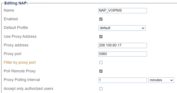NAP Configuration for VoIP.ms Trunking