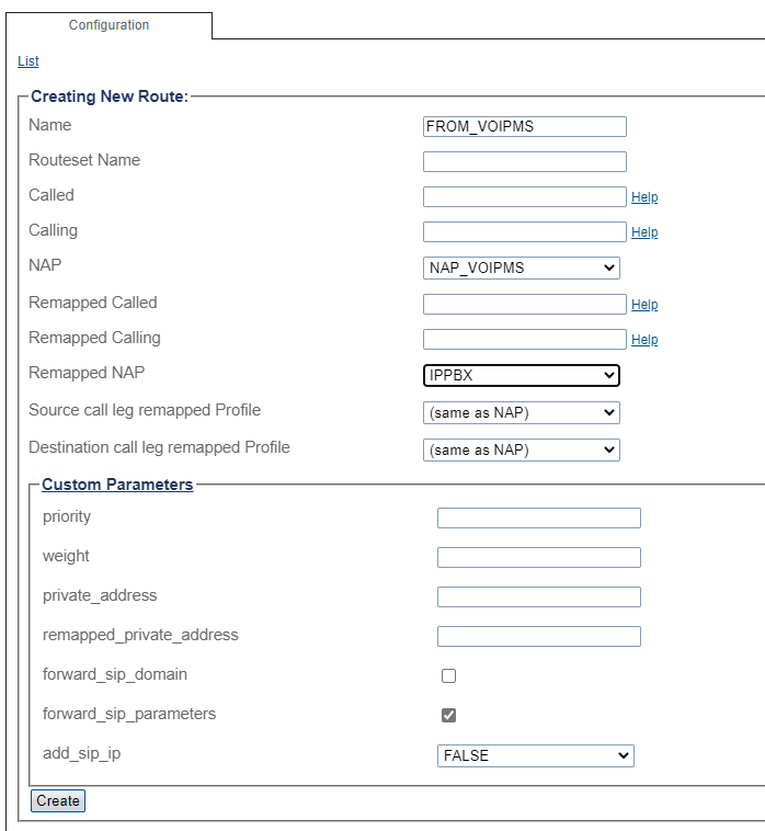 Route Configuration for VoIP.ms Trunking