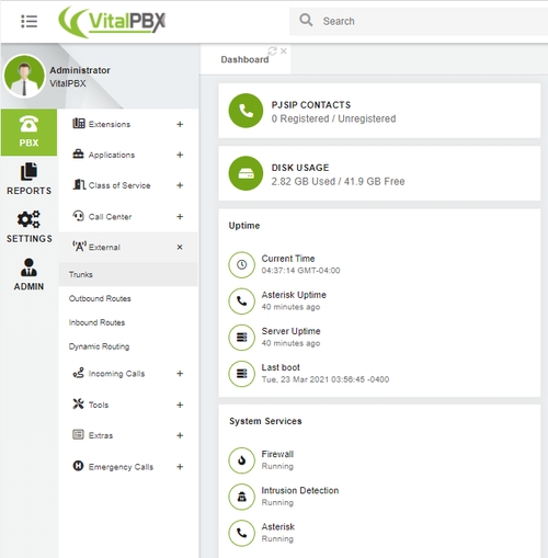 1. Login into the administration portal via the IP address of the machine that is running VitalPBX.
