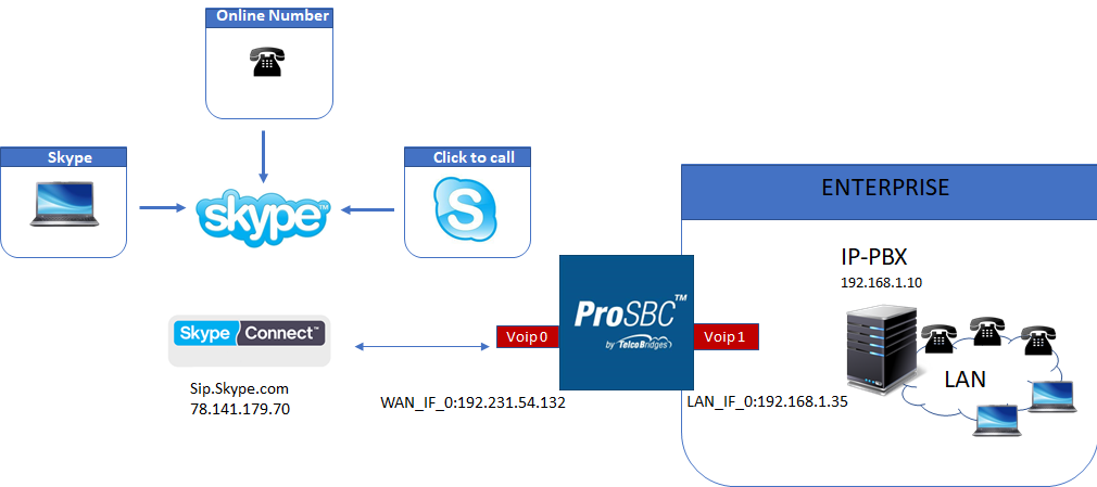 The Skype Connect Example Configuration provides you with a step by step Skype Connect Configuration with ProSBC systems, using the Web Portal configuration tool. Complete general installation configuration steps, before you begin configuring your specific scenario.
