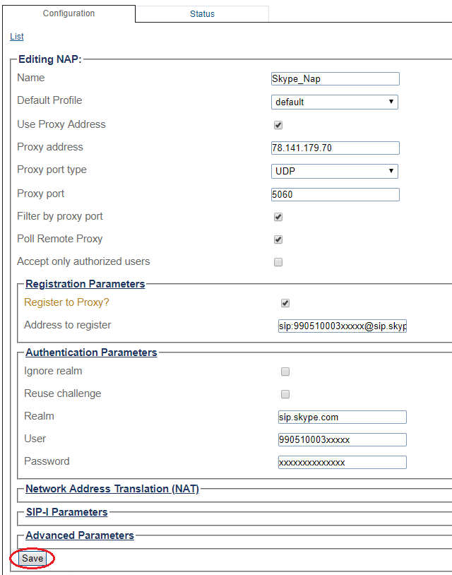 A Network Access Point or NAP represents the entry point to another network or destination peer (e.g. SIP proxy,SIP trunk, etc)