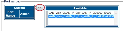 Click "<<" to associate WAN_Vlan:0 Port range with the NAP