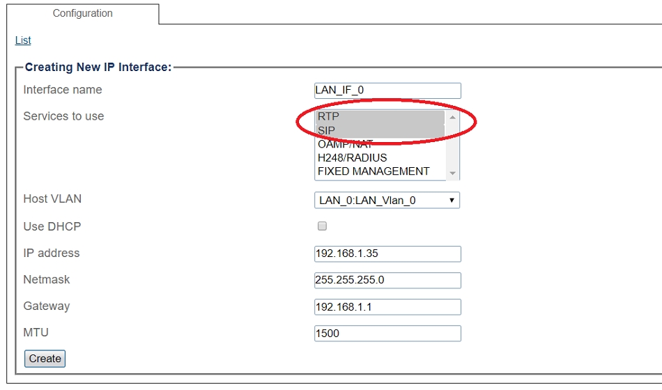 Select 1 or more services to use for the IP interface (RTP and SIP).