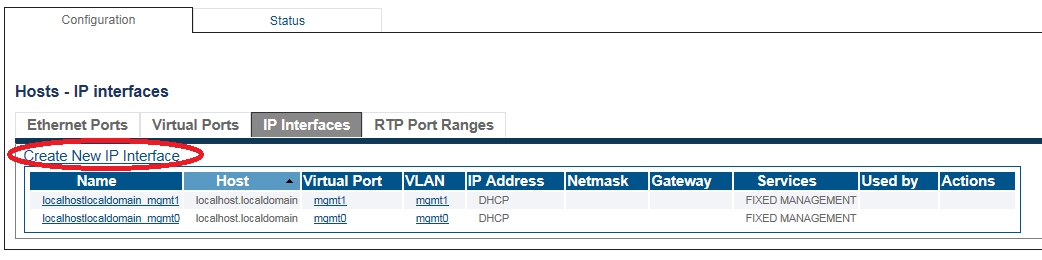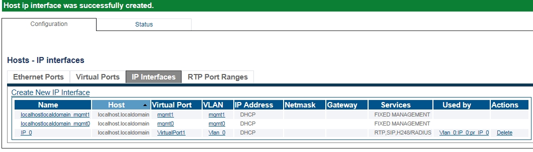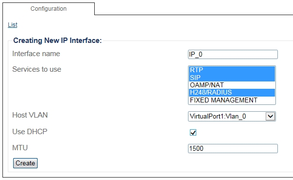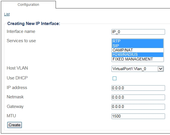 Select 1 or more services to use for the IP interface (RTP, SIP and H.248/RADIUS can be selected simultaneously).