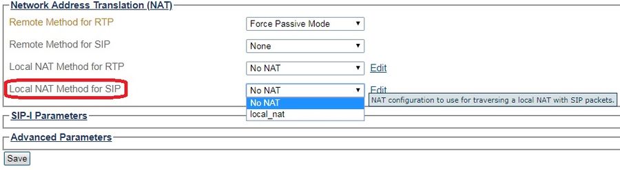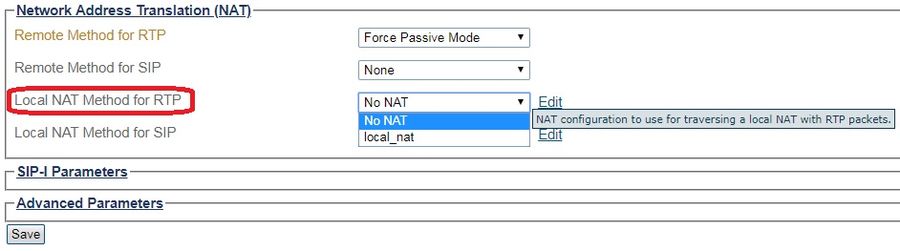 Existing [Local NAT name] item: local NAT name that will be used for the local SIP traversal method.