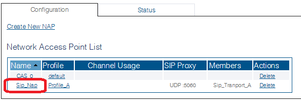 2. Select an existing SIP NAP in the list: