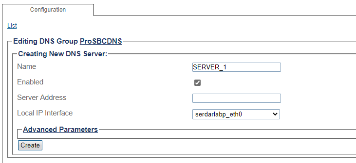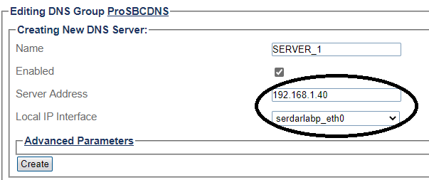 8. DNS server Port, Protocol and local POrt can be configured under Advanced Parameters
