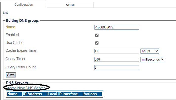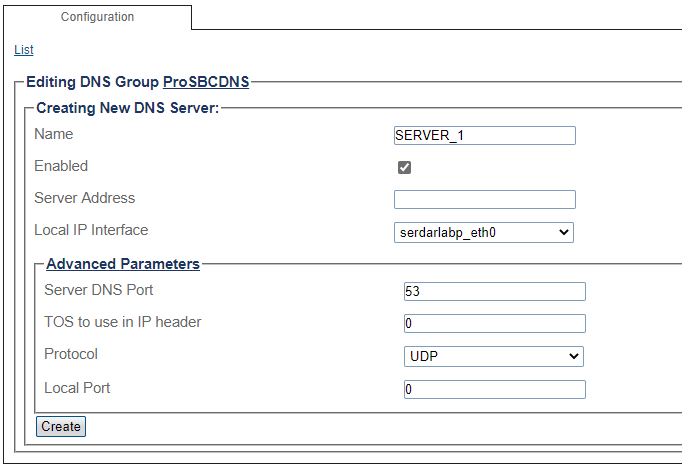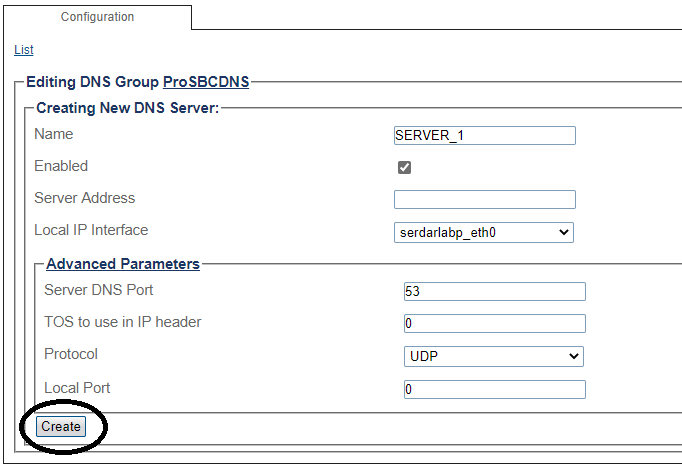 7. Enter the DNS Server IP address and Select the local IP interface used to send DNS queries.