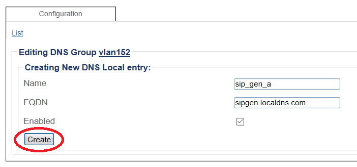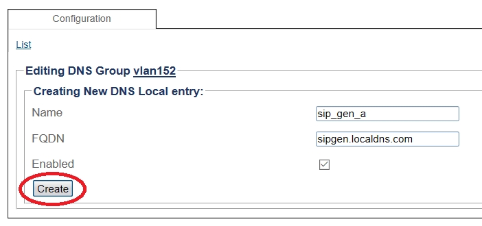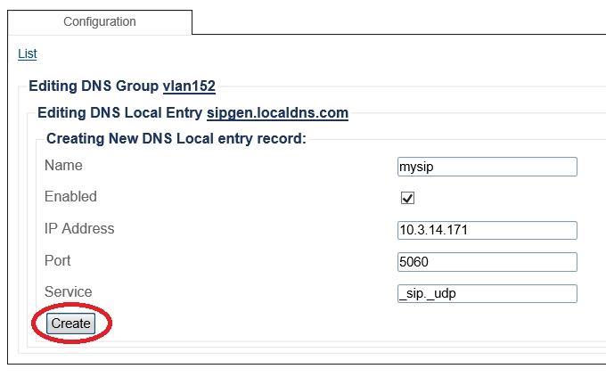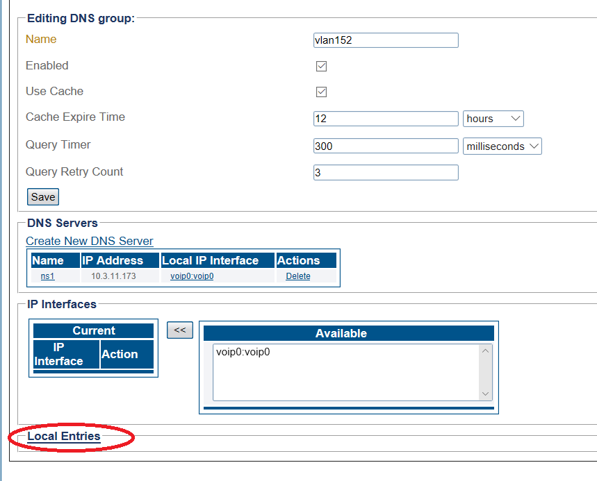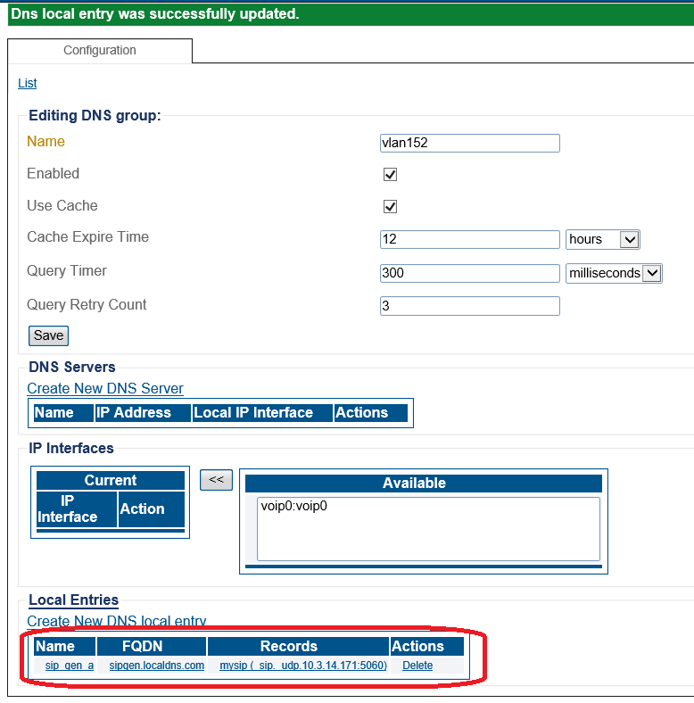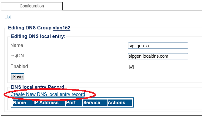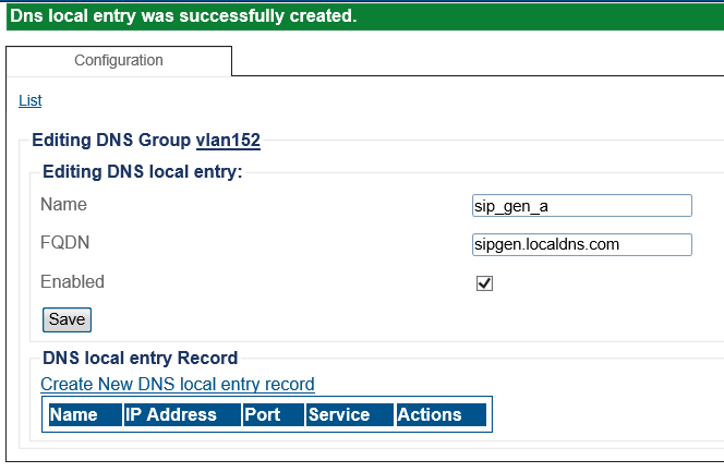 7- Once the DNS Local entry is created you add one or more DNS local entry records to it.