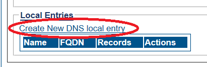 Click Create New DNS local entry record.