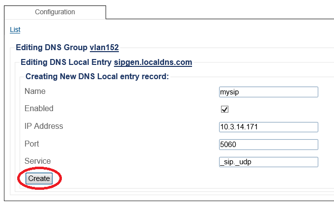 Creating a DNS Local Entry