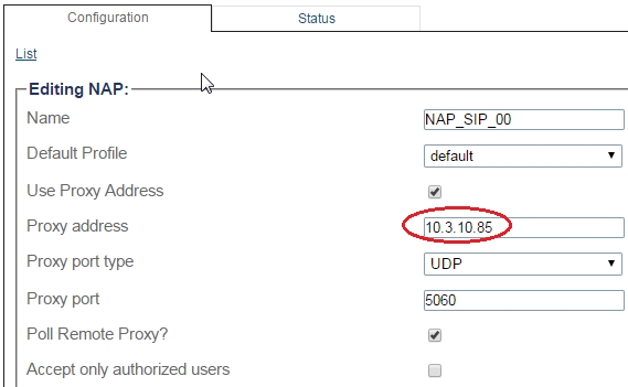 A NAP with a specific proxy address does not need the Access Control List (ACL) to be explicitly configured, as the NAP will automatically accept incoming packets from the proxy IP/Port.<br.> It is still possible to configure IP address ranges in the ACL, to accept incoming calls from IP addresses other than the proxy.