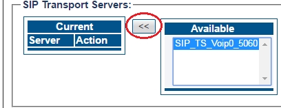2-Click "<<" to associate the SIP Transport Server with the NAP