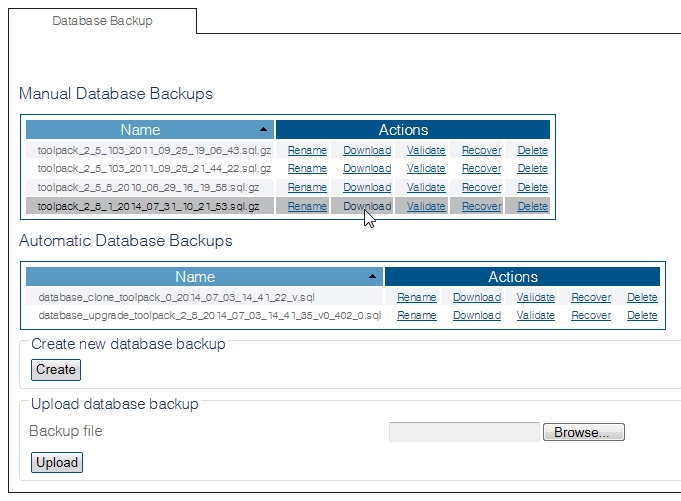 Once a backup of the database is created, it is recommended that you download it to an external storage device.