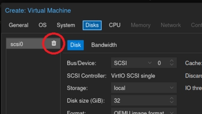 In newer Proxmox versions (screenshot from version 8.2), you can delete the suggested disk by clicking on the trash can.