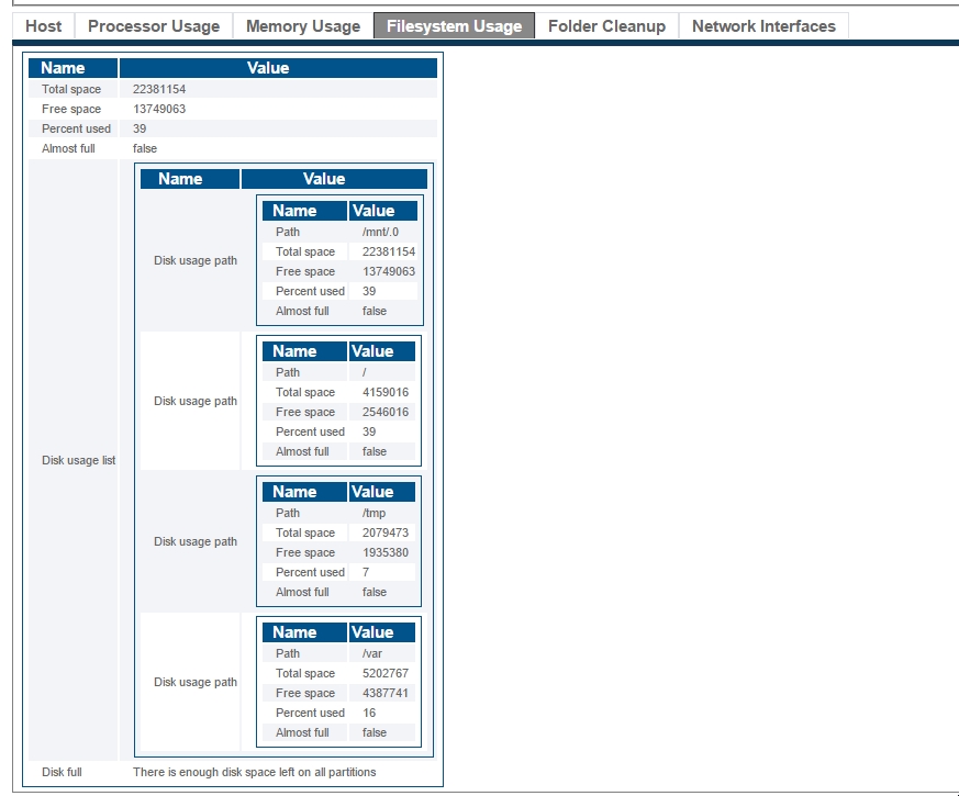 This procedure is used to check the remaining disk space on the Linux host. Since this is a standard distribution of Linux, customers can use other available commands.
