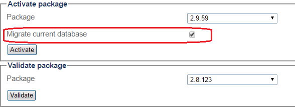 Changed to B at upgraded software version 2.9, no Migrate current database checked