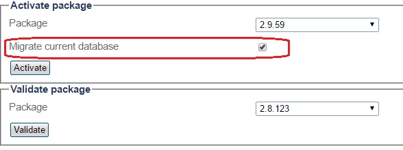 Select Migrate current database in the Activate package section