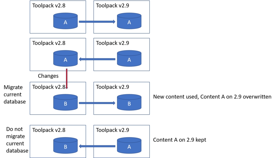 A changed to B at original software version 2.8, different Migrate current database scenarios