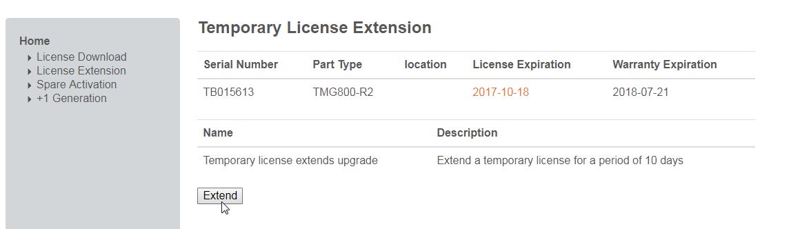 3- Click Extend. This will extend the license for 10 days.